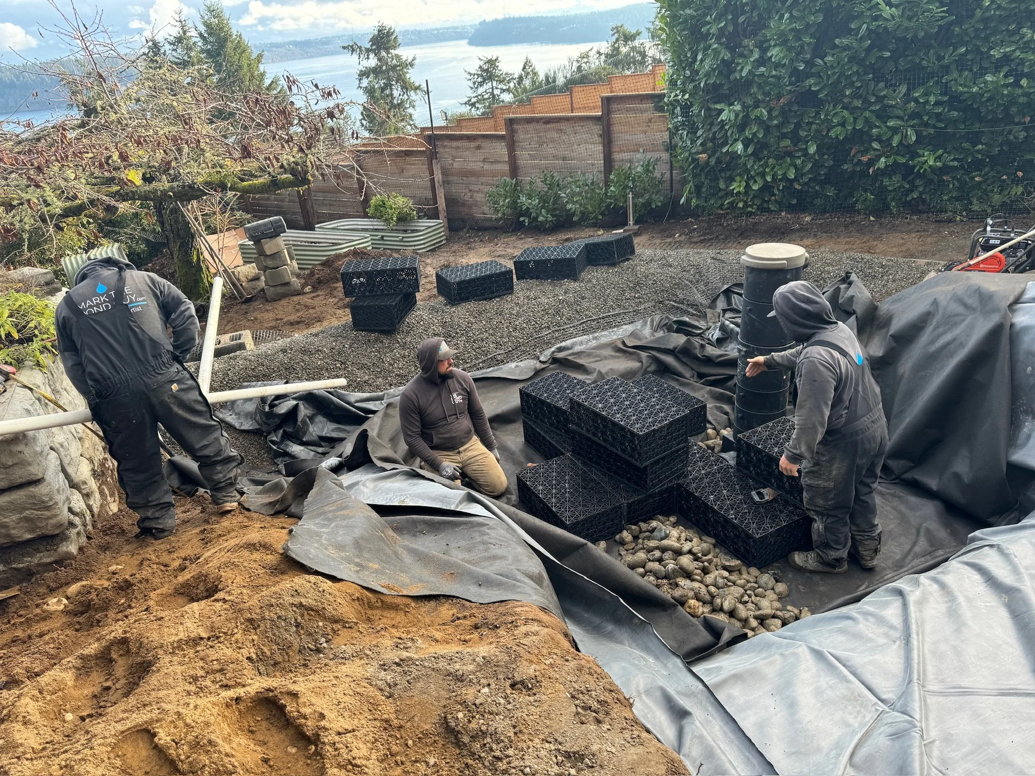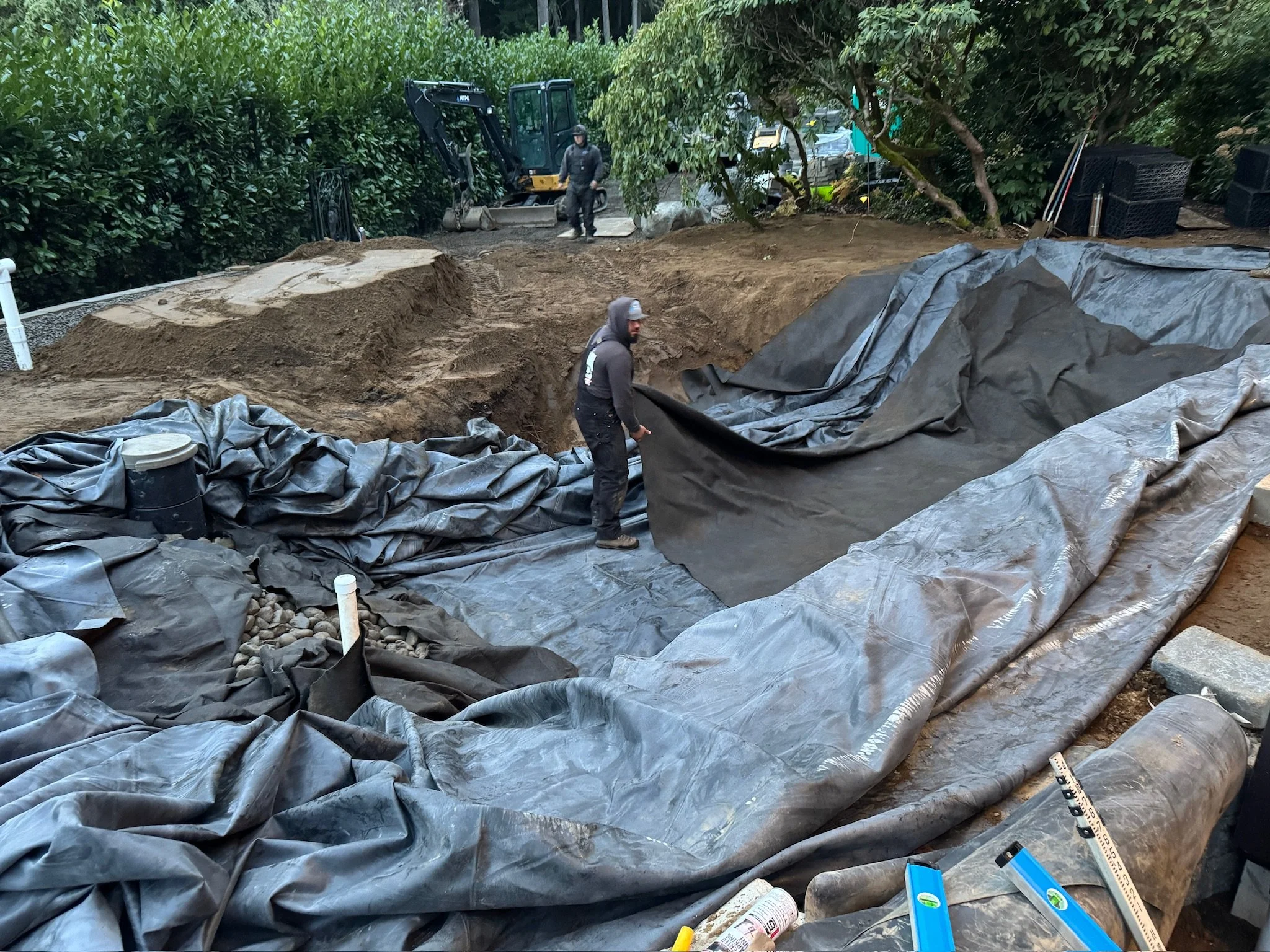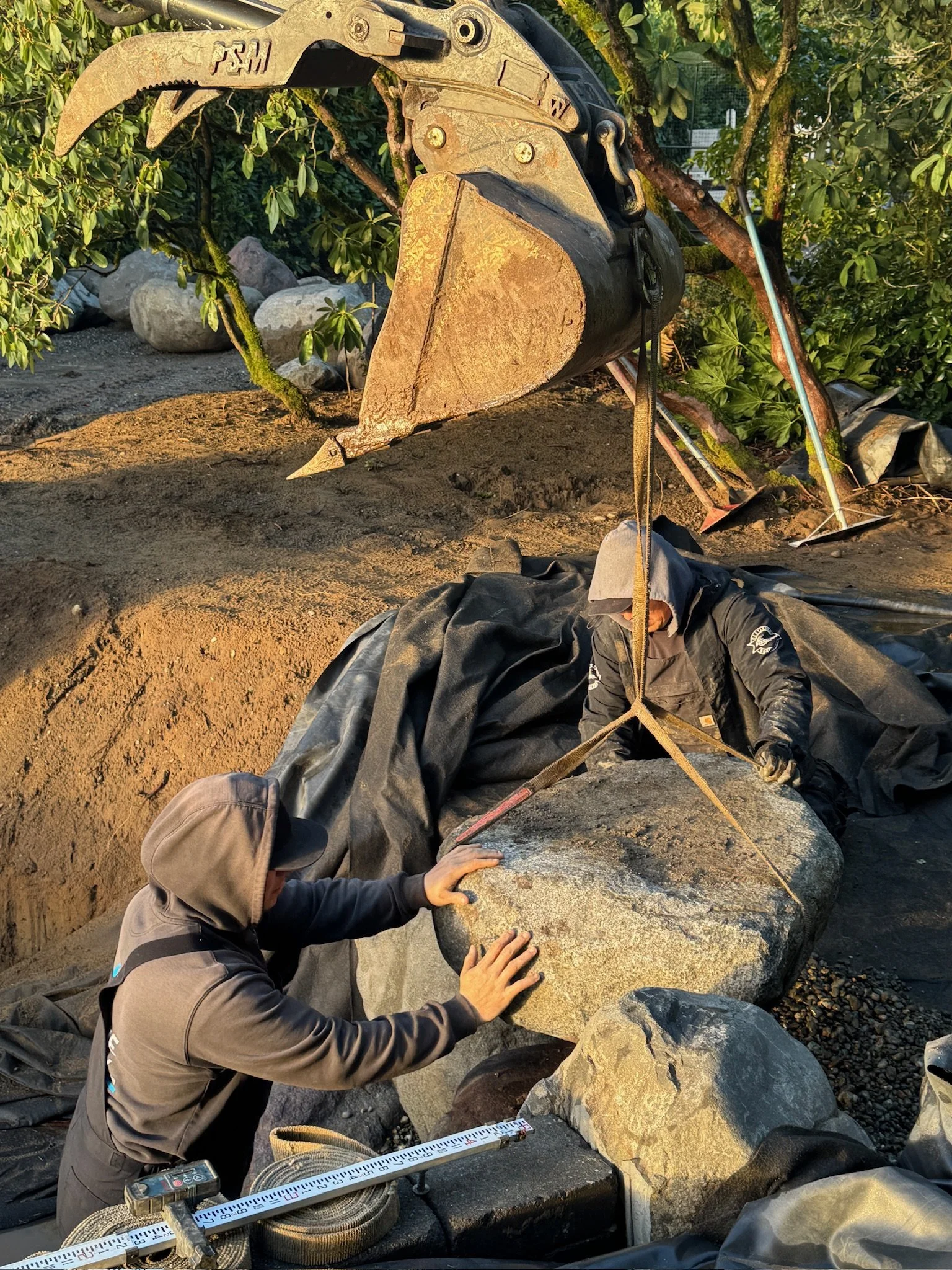The team carefully placed each rock into place and I watched as the pond perimeter took shape