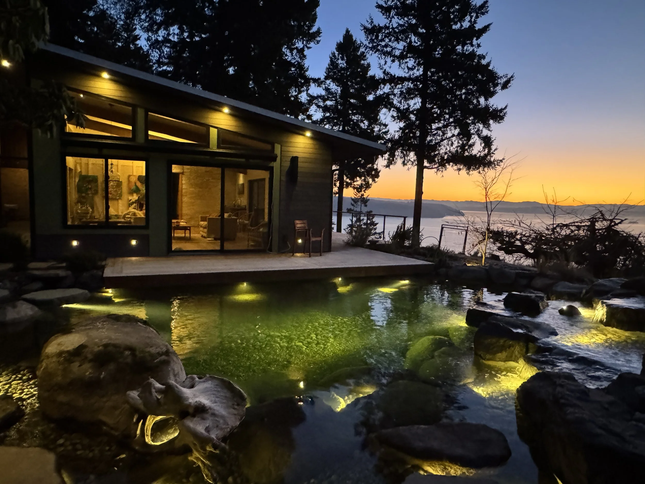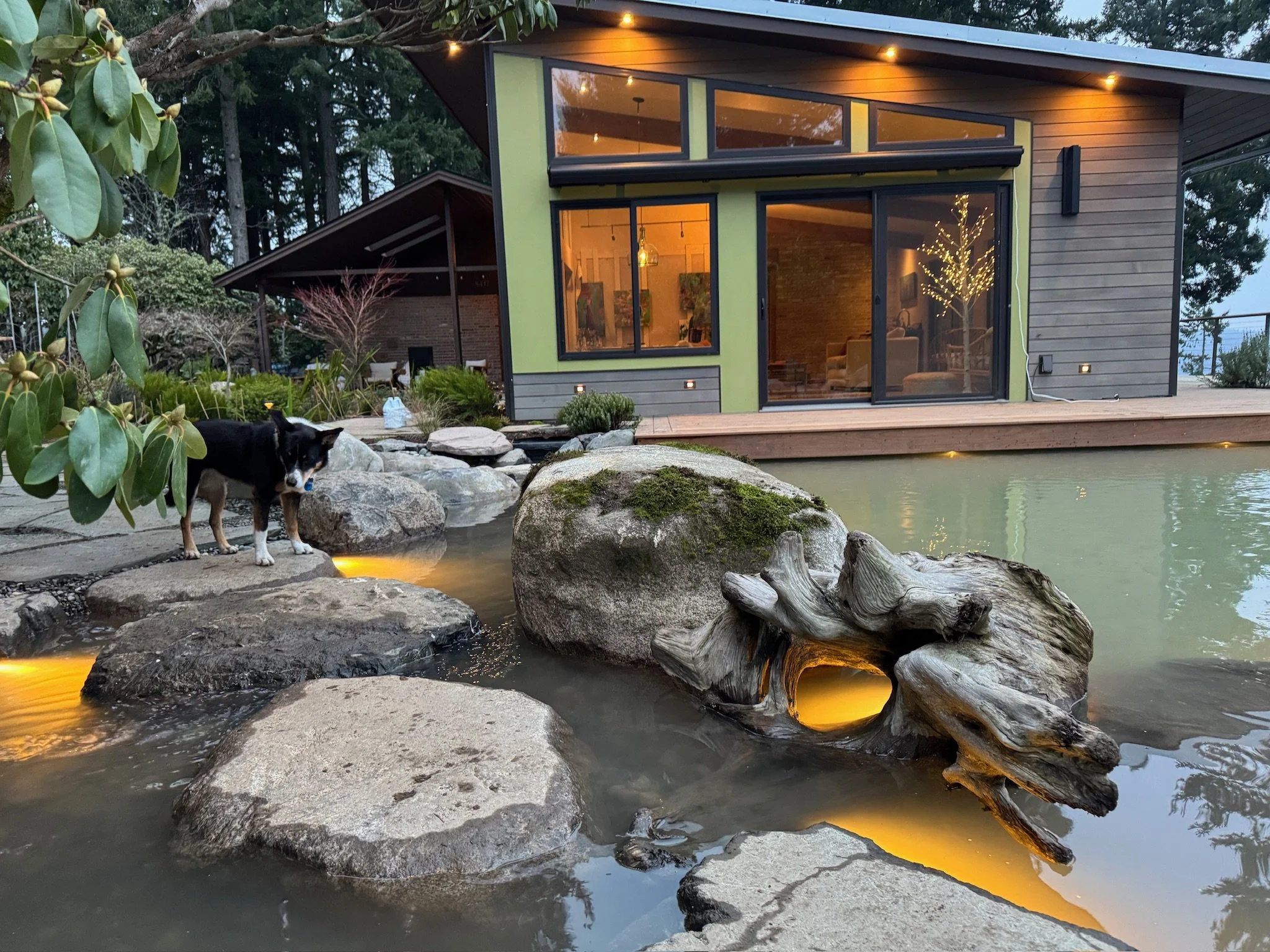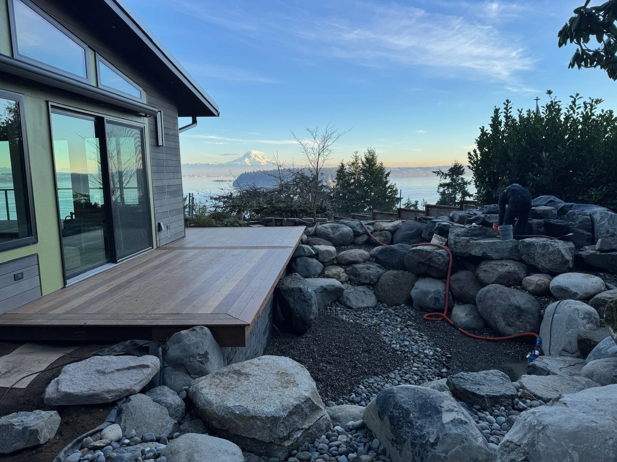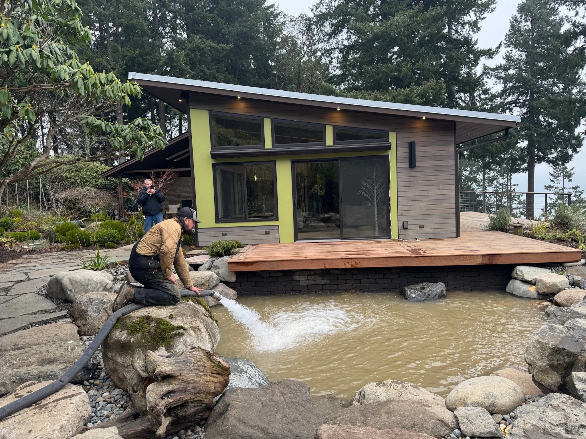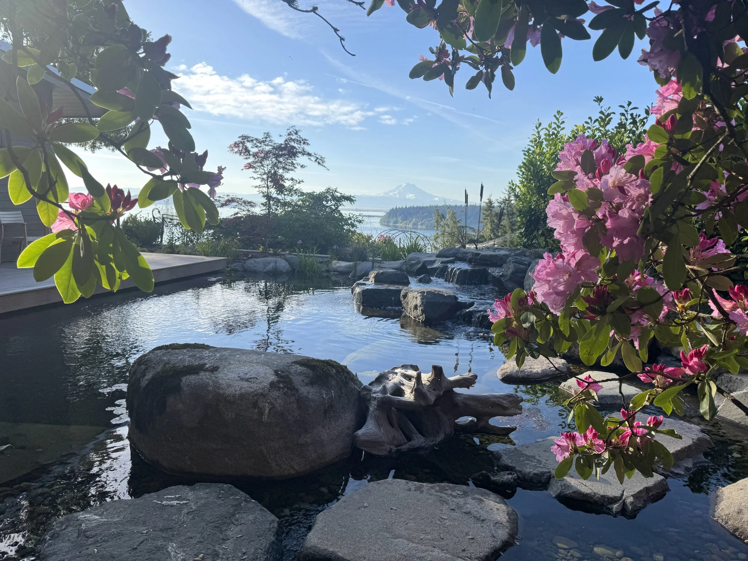 Finally the deck and pond were complete, the rain cleared and Mount Rainier took center stage