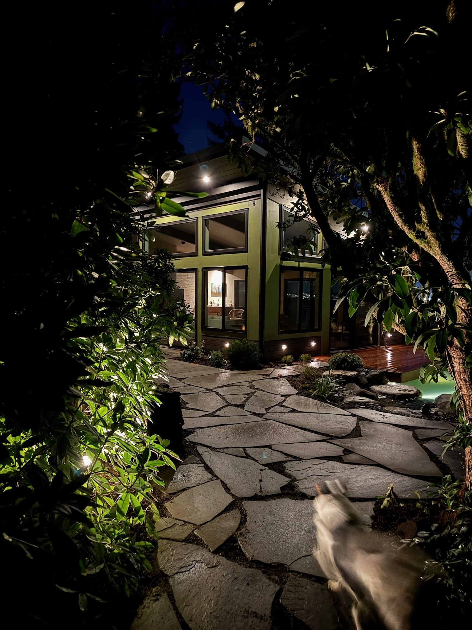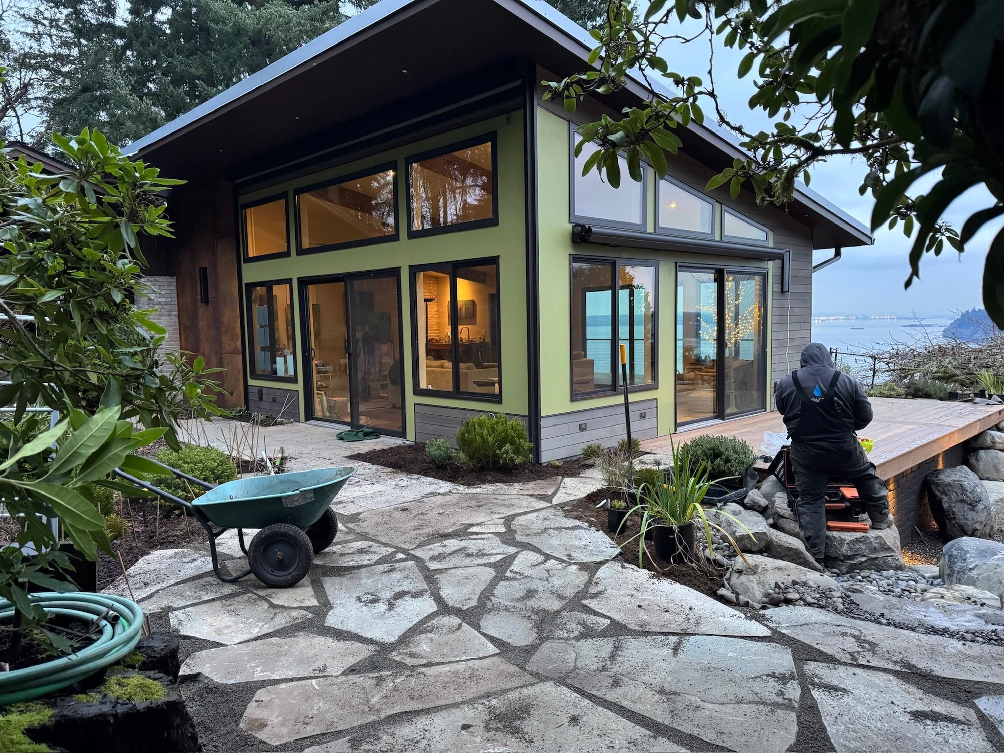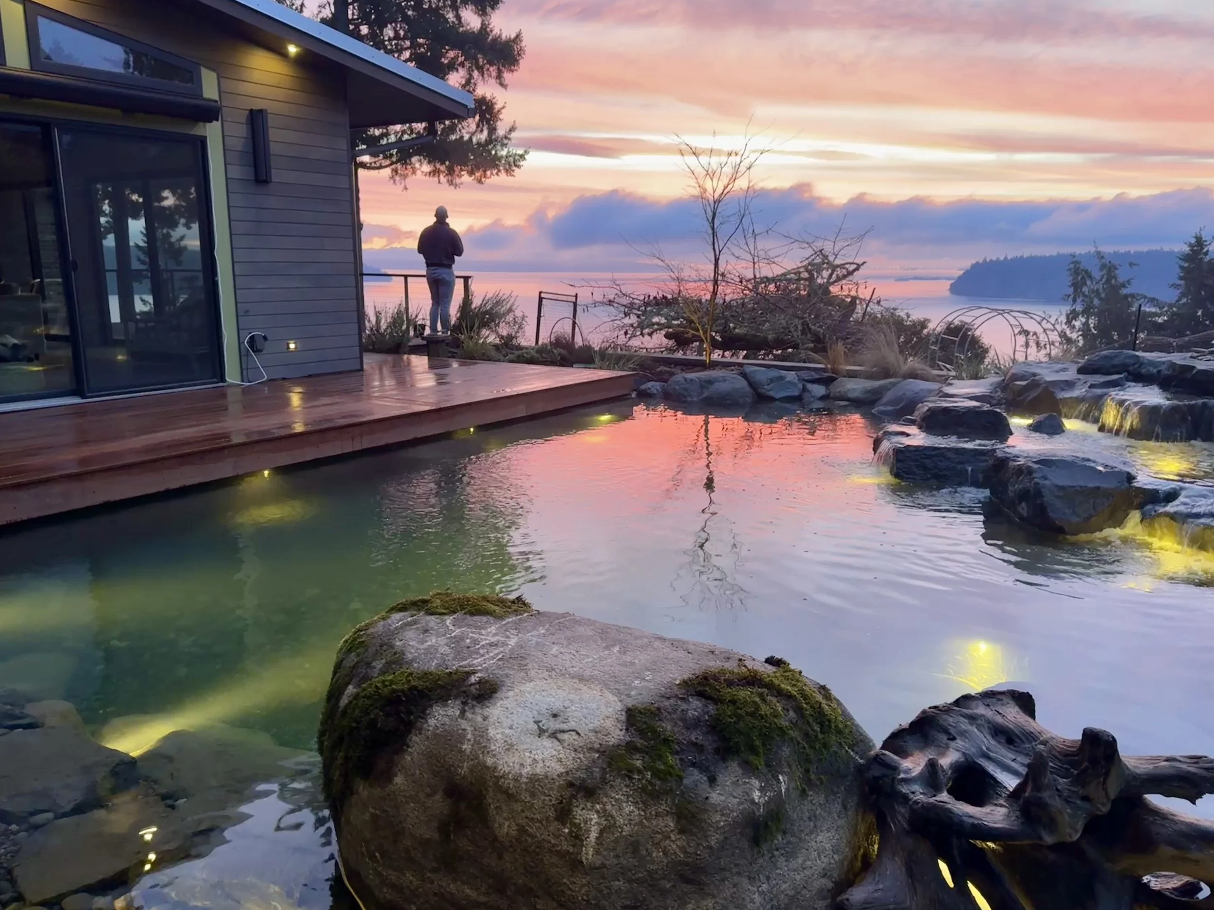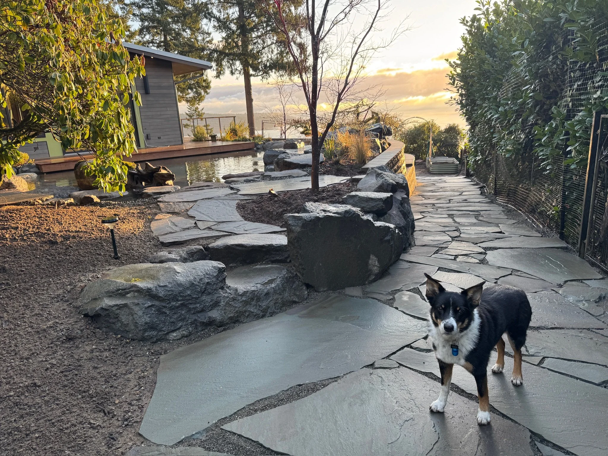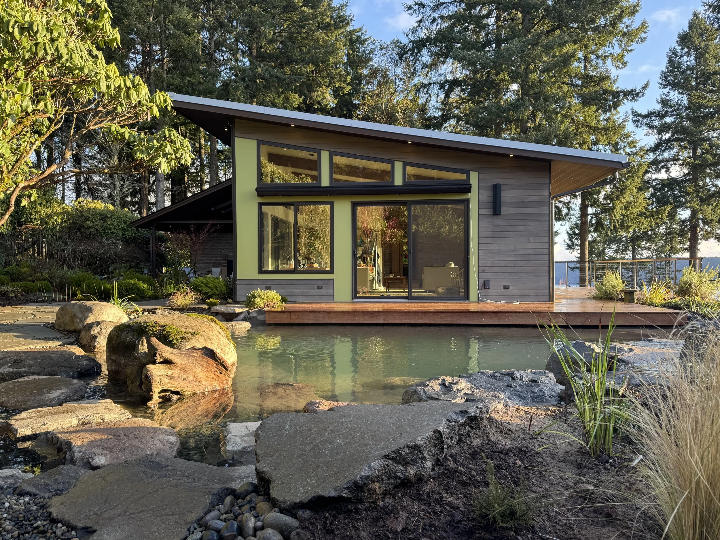 Finally the deck and pond were complete, the rain cleared and Mount Rainier took center stage
