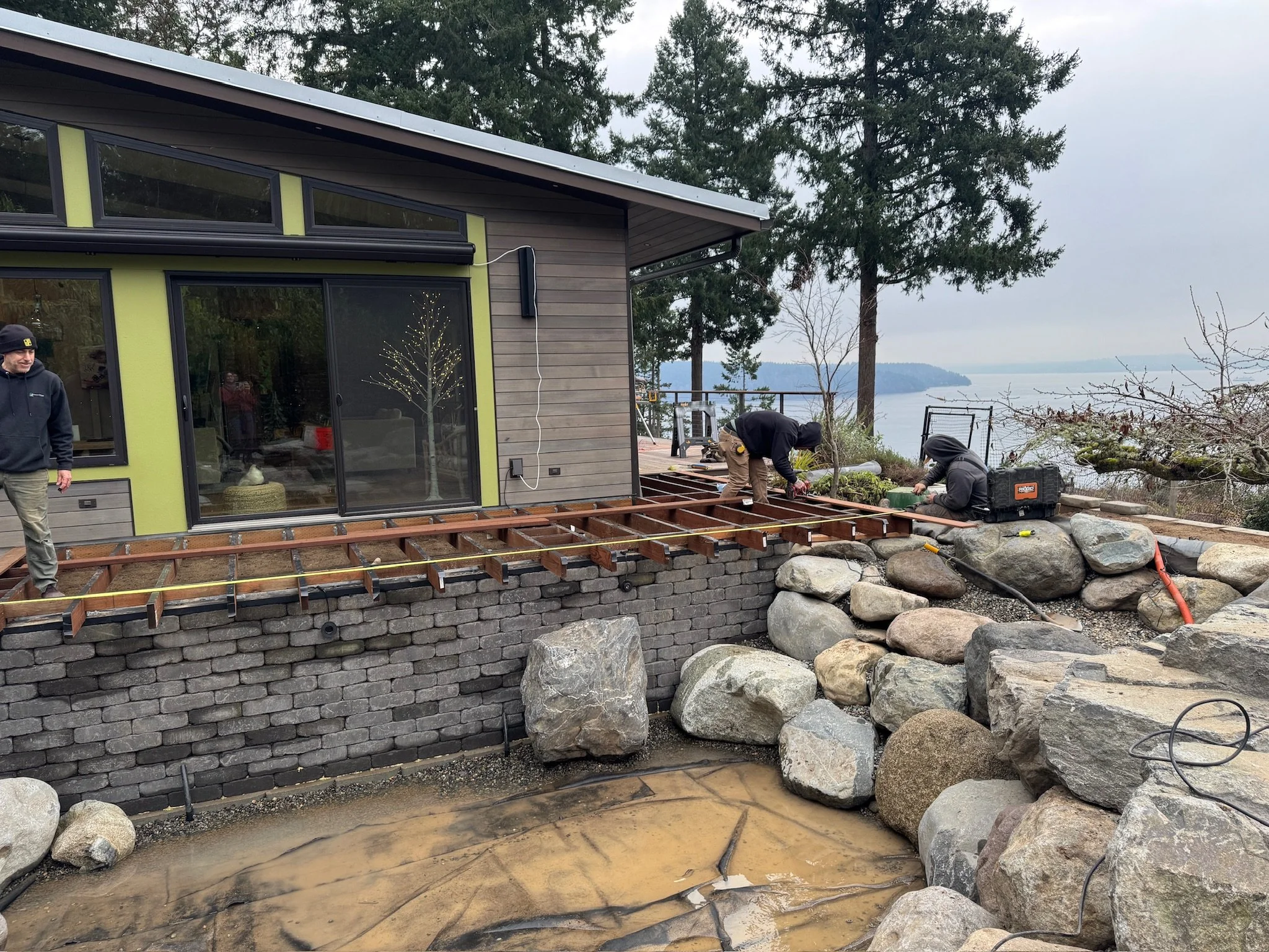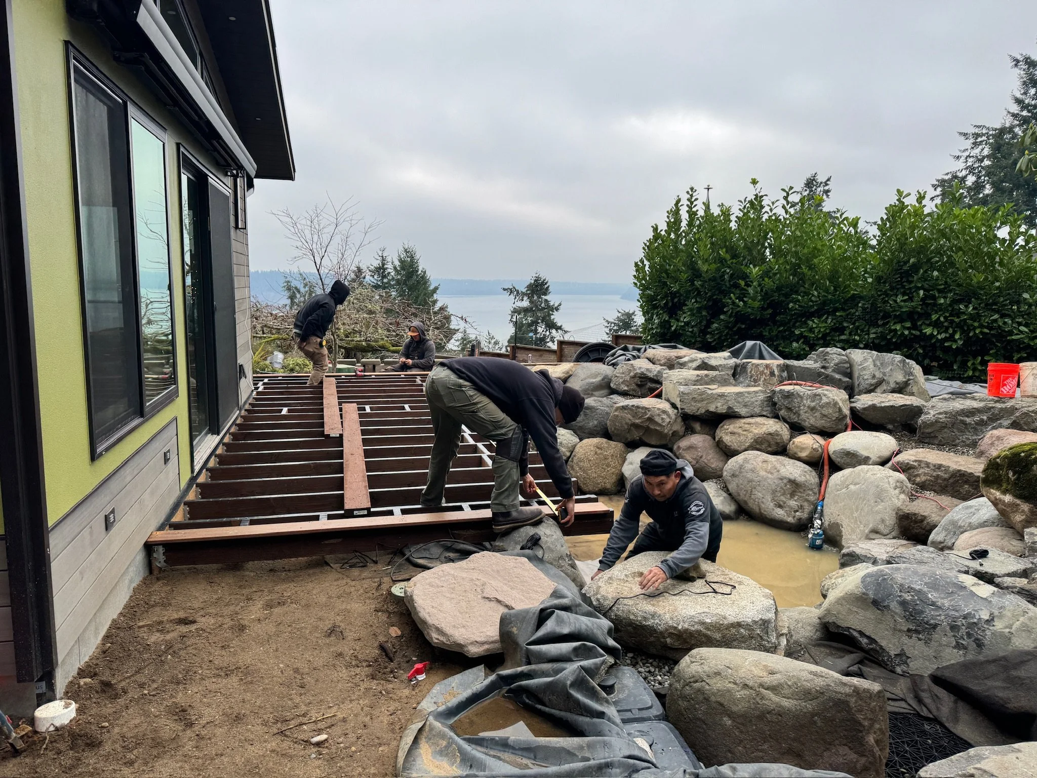 While Dan and his team were placing boulders, a team from Harrison Homes built the overhanging deck