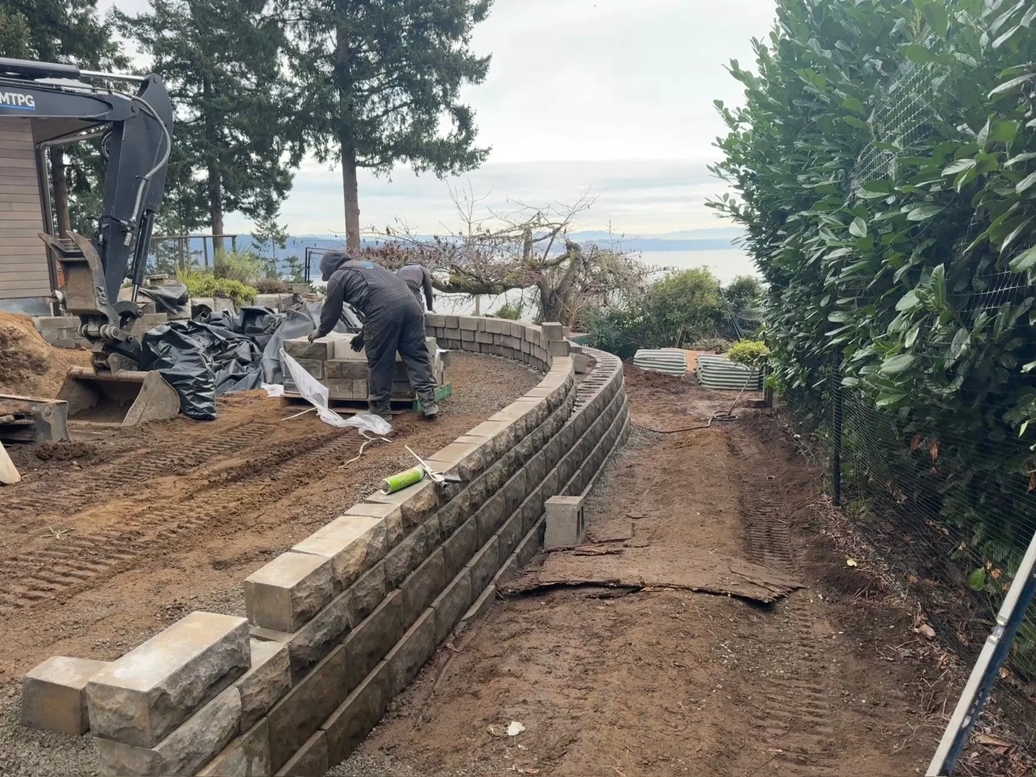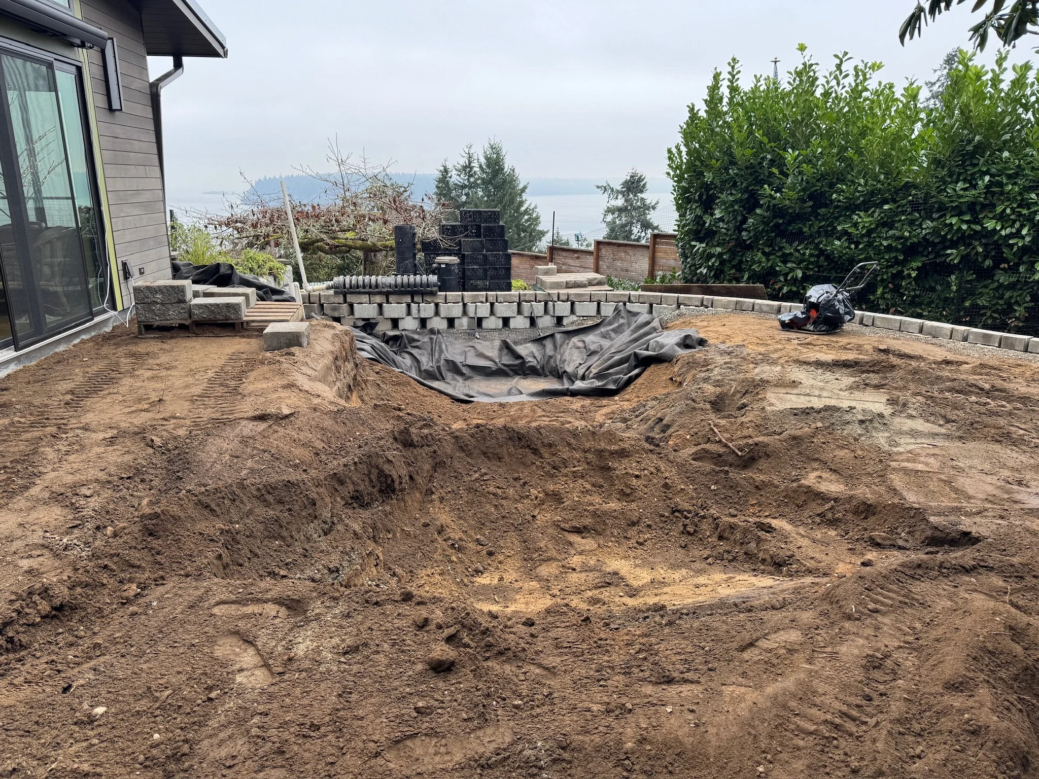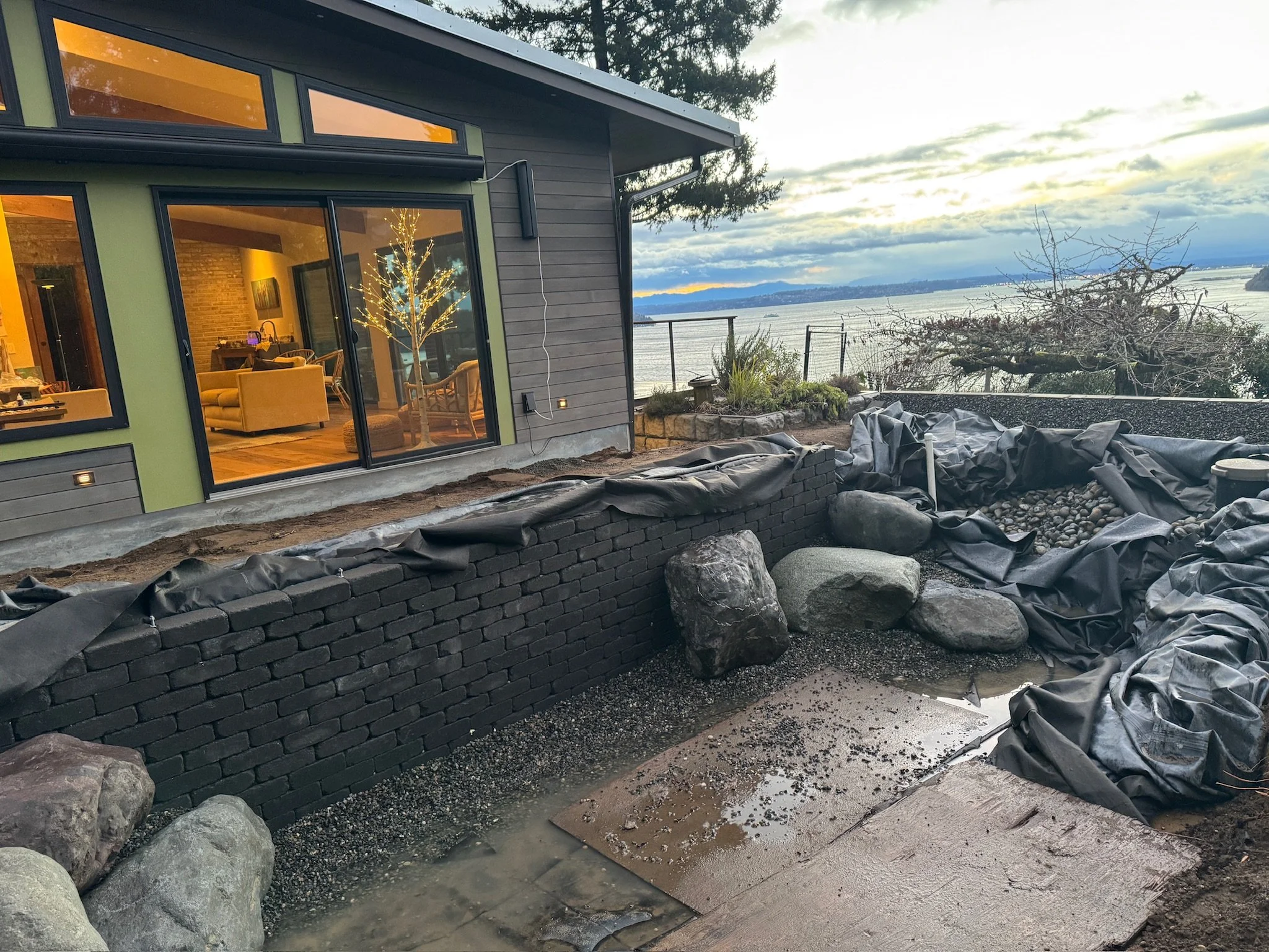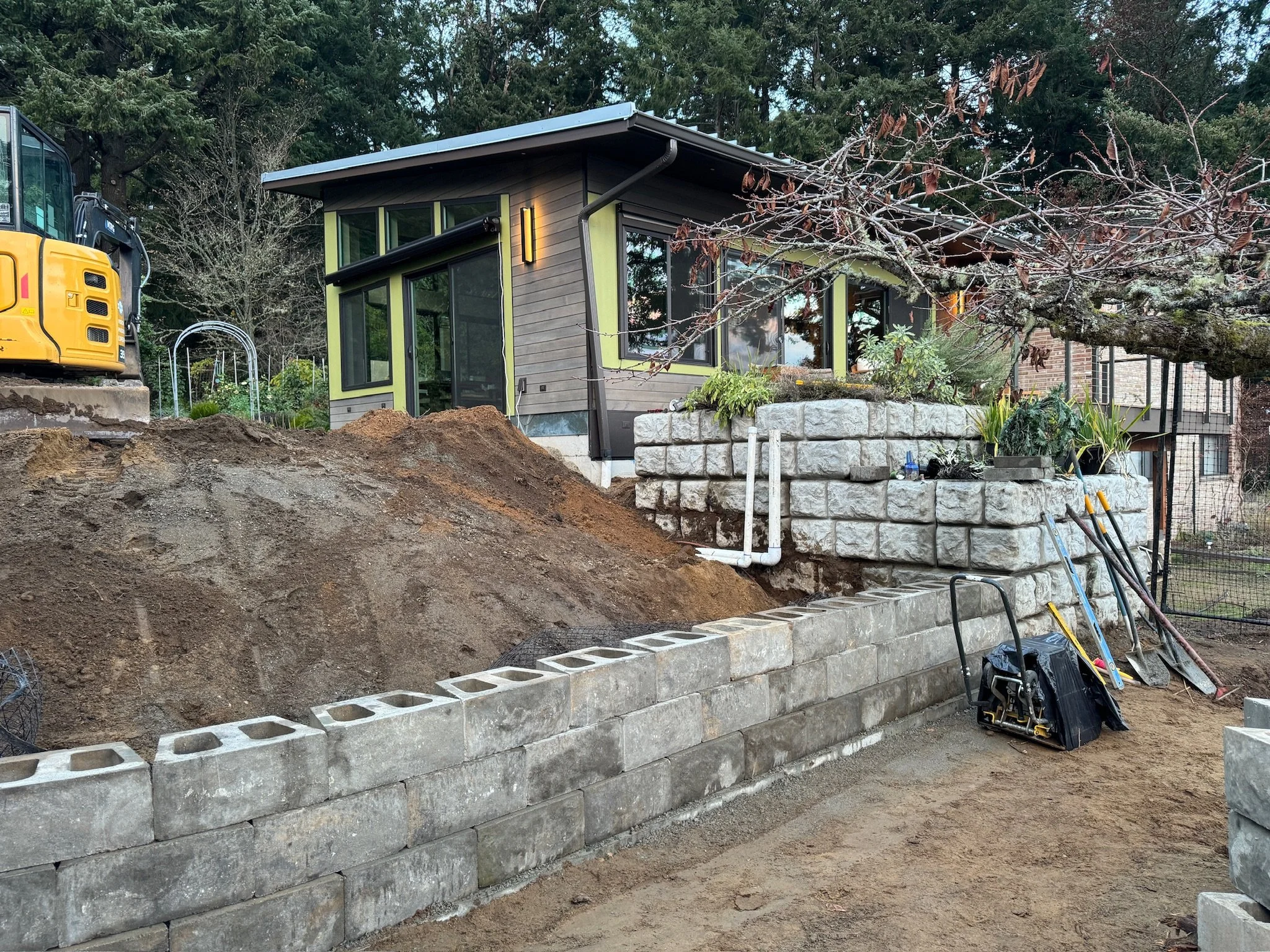 Next step - a retaining wall on the studio side that doubles as support for the future overhanging deck: