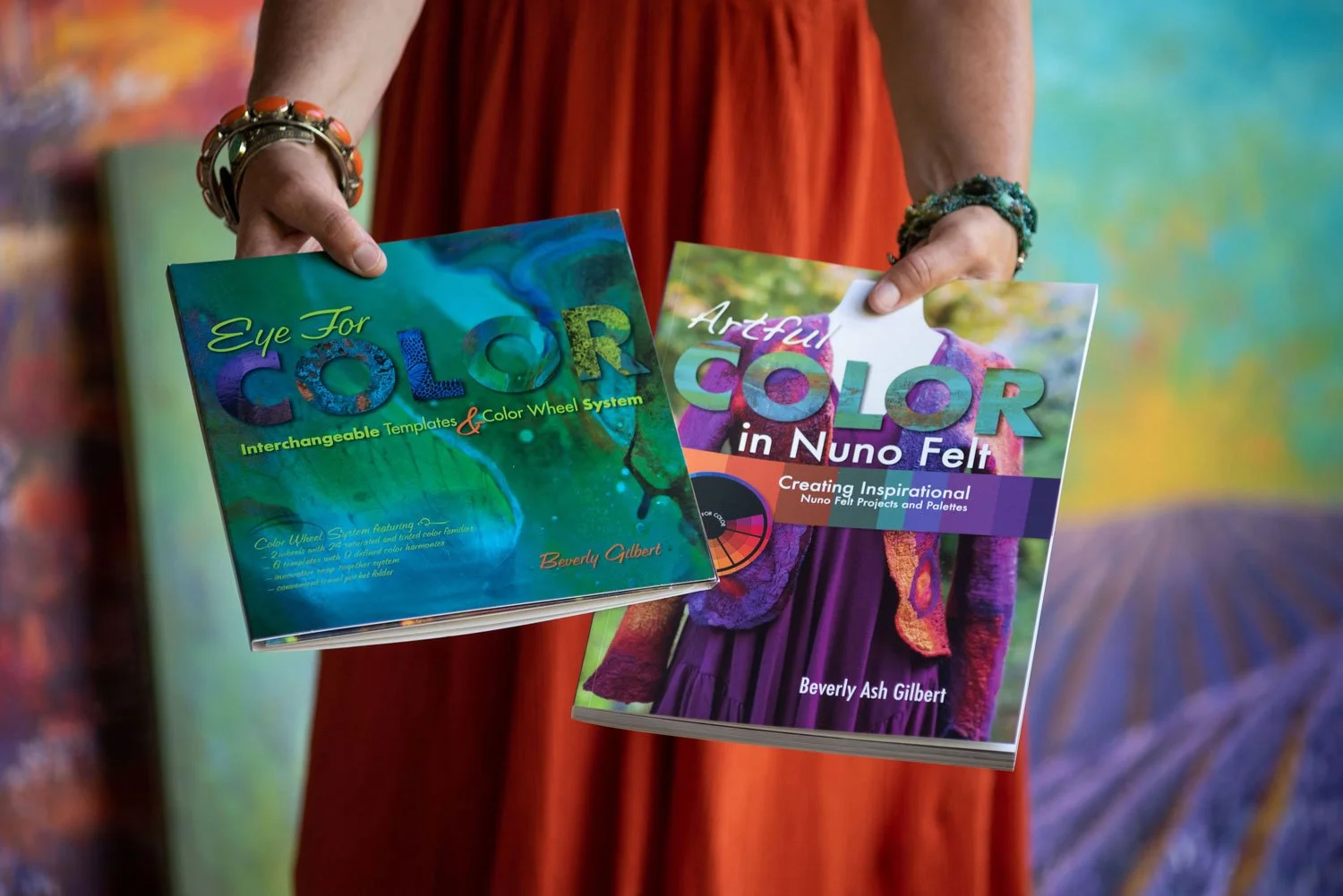 Learn how to Nuno Felt—a luscious fiber art using wet-felting of silk and wool. Whether you’re new to fiber art or a lifelong felting enthusiast, indulge your creative spirit with the inspiration you've been searching for, and express the colors of your world in a way that is richly layered, full of delightful surprises and generous with colorful possibilities. Artful Color in Nuno Felt is an award-winning book that will take you from the basics of nuno felting a simple scarf, to more advanced projects including colorfully vibrant shawls, purses and jackets and more.