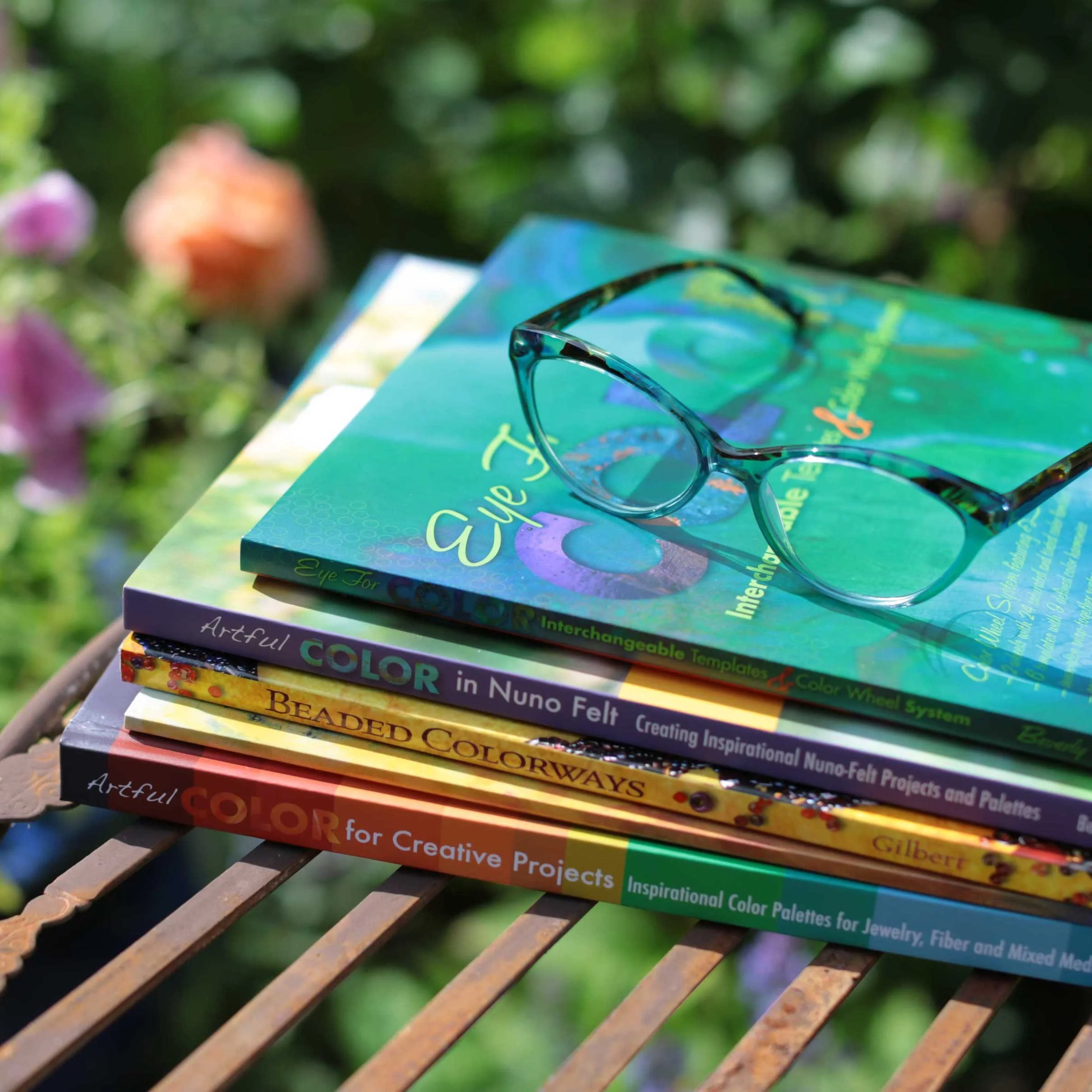 I'm surrounded by piles of books, bins dripping with paint, tuffs of fiber in every color I can find, bouquets of flowers, vignettes of found objects, bowls of sea glass – their colors dancing with possibility. I draw inspiration from these bits and pieces, and can hardly wait to dive in to my next composition where I can use the unexpected pops of color, texture and movement.